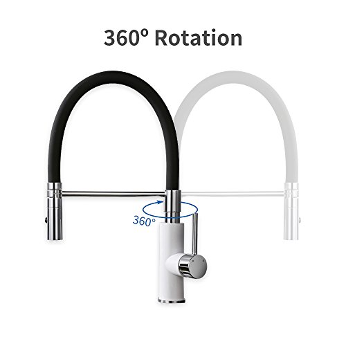 Título: DESFAU 2 Funciones Grifo de Cocina Blanco y Negro Extraíble Giratorio Grifo de Fregadero Monomando de Fregadero Grifería cocina Agua Fría y Caliente Cromado